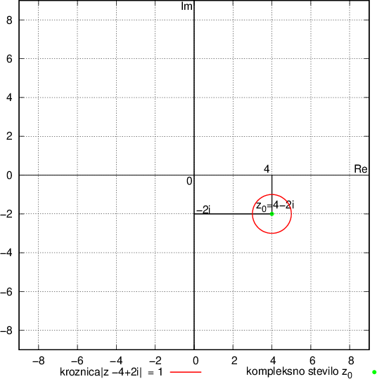 V našem primeru gre za krožnico v kompleksni ravnini s središčem v in polmerom r = 1