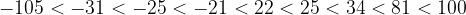 Števila 103, -27, 33, -107, 30, -24, 24, -34, 84 uredite po velikosti.