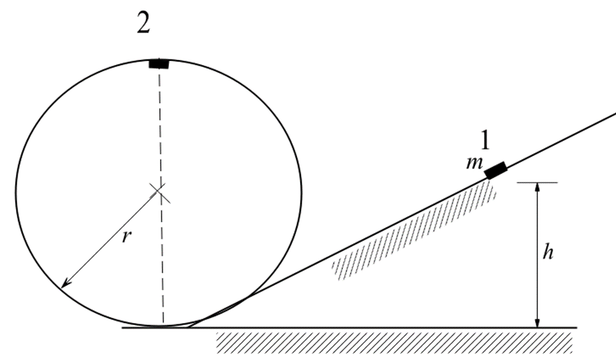 Majhno telo zdrsne z višine po gladkem klancu, ki se nadaljuje v krožni tir s polmerom (glejte sliko).