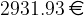 Izračunajte kolikšen znesek bo privarčeval Gašper, če je najprej vložil 1100 € za 5 let pri 2 % obrestni meri, kasneje pa je privarčevanemu znesku dodal še 1100 €, in naslednjih 8 let obrestoval po 3 % obrestni meri. Pripis obresti je leten.