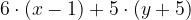 6 - kratnik razlike števil x in 1 povečaj za 5 - kratnik vsote števil y in 5. Zapiši dani izraz. Izračunaj vrednost izraza za x = 4 in y = 12.