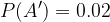 Strelec ustreli na tarčo z verjetnostjo zadetka 0.98. Izračunajte kolikšna je verjetnost, da bo strelec tarčo zgrešil.
