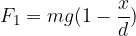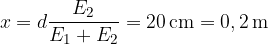 Na vzporednih žicah enakih dolžin in presekov je palica na kateri visi utež z maso (glejte sliko). Žica je jeklena z modulom prožnosti, žica pa bakrena z modulom prožnosti. Na kolikšno razdaljo od levega konca palice moramo obesiti utež, da bo palica z dolžino vodoravno?